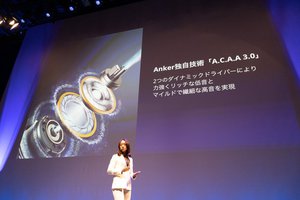 豊富な機能と高音質を追求し、“Anker史上最高傑作” とアピールする完全ワイヤレスイヤホン。口径の異なる2つのダイナミックドライバーを1つのモジュールに統合した独自の音響構造「A.C.A.A 3.0」を採用し、力強くリッチな低音と、マイルドで繊細な高音を両立したとのこと。また、専用アプリ「Soundcore」を介して、特定の周波数帯域における音の聞き取りやすさを測定し、自動調整してユーザーごとに音質を最適化する「HearID」も利用できる。