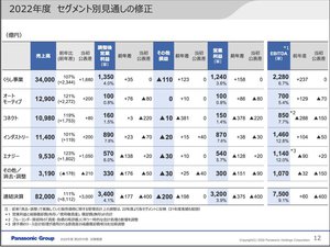 セグメント別実績は、家電を展開するくらし事業で、成長事業の空質空調設備の欧州事業や海外電材、 北米のショーケースが堅調に推移、上海ロックダウンの解除による国内家電の回復等もあり増収。オートモーティブは自動車生産の回復を受け、増収となった。
