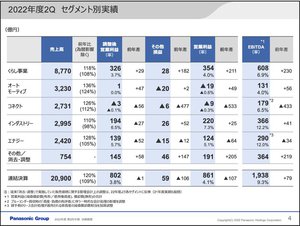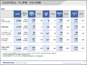 パナソニック2022年度2Q決算、販売増や為替換算などで増収。くらし事業も堅調に推移