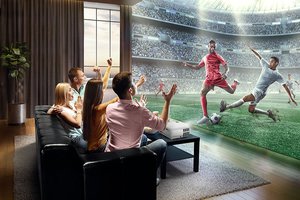 輝度は3,200ANSIルーメンで、日中の明るい環境でも鮮やかに映し出す。スポーツ観戦に適した画像モード「スポーツモード」も搭載し、サッカーをはじめとするスタジオの芝やユニフォームのカラーを鮮明に再現するという。