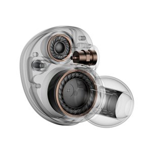 ドライバーユニットは、デュアル磁気回路とデュアルチャンバーによるダイナミック型で、口径は12mm。同構造から磁束密度は1.9Tを超えるとのことで、これによりドライバーの全音域のレスポンスを高め、イヤホンの安定性とドライバビリティも維持できるよう配慮した。また、パッシブラジエーターも搭載しており、ユニット内の空気振動でラジエーターが一定の周波数で共振し、低音域の増幅・補強を行う。