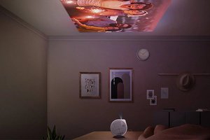GV11は、2021年10月発売された従来モデル「GV30」と同様、135度の角度調整機能を搭載するLEDプロジェクター。壁や天井はもちろん、斜め上、傾斜にも投影可能で、40度の自動縦補正機能により、映像を歪みなく映し出すことができるとしている。