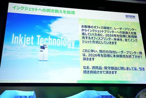 そしてこの度、オフィス環境でのレーザープリンターからインクジェットプリンターへの移行をさらに加速するため、2026年を目標に、新規に販売するオフィスプリンター本体を全てインクジェット方式に切り替えることを発表。これに伴い、現行の同社レーザープリンターは2026年を目処に本体販売を終了する。なお、消耗品、保守部品に関しては引き続き供給を続けていくとしている。