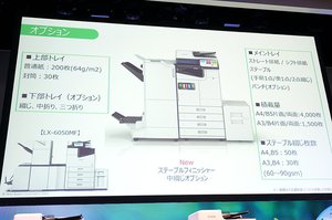 LMシリーズは、印刷速度帯40〜60枚/分のA3カラー複合機。印刷スピード60枚/分の「LM-C6000」、50枚/分の「LM-C5000」、40枚/分の「LM-C4000」の全3モデルを展開し、24ipm〜100枚/分までの中速度帯ラインナップを大幅に拡充した。発売時期は2023年2月上旬を予定している。