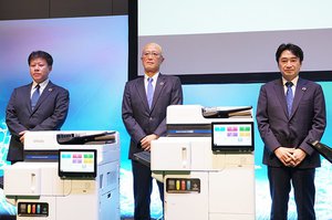 中速度帯のラインナップ強化のスタートとして、現行商品の高速A3複合機「LXシリーズ」、A4・A3複合機/プリンター「PXシリーズ」に加わるA3カラーインクジェット複合機「LMシリーズ」を発表した。