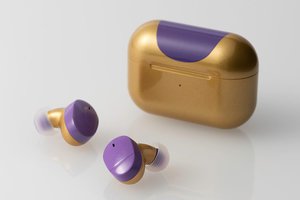 イヤホン本体は同キャラをイメージしたホワイト×パープルの2トーン仕上げを採用。充電ケースは、「それまでの形態の圧倒的な力を小さな身体に集約された」とする第四形態をモチーフにデザインされている。