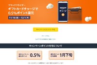 ほかにもAmazonブラックフライデーを楽しむ上でオススメしたいのが「Amazonギフト券」へのチャージ。このAmazonギフト券、現在2つのキャンペーンが並行して走っており、そのうちひとつは要事前登録、もうひとつは注文確定前にクーポンコードの入力が必要となっている。