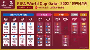 なお、12月3日(土)からはじまる決勝トーナメント1回戦のオランダVSアメリカ戦、アルゼンチンVSオーストラリア戦、そして12月5日(月)の日本代表戦と同日に行われるグループG1位VSグループH2位の試合は「ABEMA」独占生中継となる。