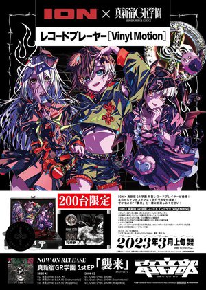音楽プロジェクト『電音部』とIONのコラボレコードプレーヤー「ION×真新宿GR学園 レコードプレーヤー [Vinyl Motion]」の発売が決定。200台限定生産モデルで価格は32,780円(税込)。バンダイナムコエンターテインメントのECストア・アソビストアにて先行予約の受付が行われている。
