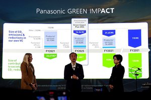 なお、プレスカンファレンスではカーボンニュートラルやサステナビリティといった、SDGsに関する同社の取り組みを中心に紹介。小川立夫CTOらが登壇し、二酸化炭素排出量削減に向けた「Panasonic GREEN IMPACT」(※「ACT」が太字になっており“行動”を意味するACTと掛かっている)について紹介するなどした。