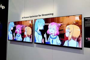 隣接するレグザのブースでは、ミリ波レーダーを活用して高画質・高音質化する技術に対応した77型4K有機ELテレビと75型4KミニLED液晶テレビを参考展示。ミリ波レーダーセンシングやAIによる高画質化の技術解説デモも披露されている。