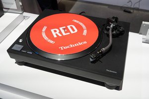 またテクニクスのターンテーブル「SL-100C」の(RED)バージョンもブースにディスプレイ。新製品ではないものの、ネットワークCDレシーバー「SAーC600」やスピーカー「SB-C600K」などと一緒に展示され、テクニクスブランドをアピールしているようだ。