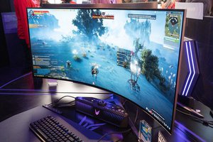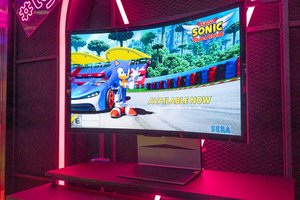 会場には非常に多くの製品が展示されていたが、その中でも人が集まっていたのが、ゲーミングのエリアだ。こちらでは日本でも1月18日に発売予定の“画面が曲げられる42インチ4K有機ELテレビ”「LG OLED Flex」が展示され、実際に曲がる様子を体験できるようになっている。