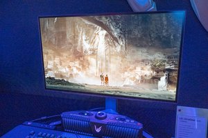 さらに、世界初の240Hz有機ELディスプレイ採用ゲーミングモニターを出展。27インチ「27GR95QE」と45インチ「45GR95QE」の2モデルが展開された。特に45GR95QEは実際にゲームをプレイして性能を試すことができるようになっており、多くの来場者が体験を行っていた。