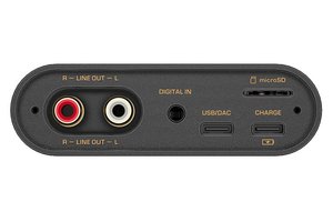 ヘッドホン出力端子は、3.5mm/4.4mm/6.35mmの3系統を装備。3段階(Low/Medium/High)のゲイン設定機能を装備し、様々なイヤホンやヘッドホンにあわせて調整できる。最大出力レベルはシングルエンド出力で450mW(@32Ω)、バランスで1,300mW(@32Ω)。