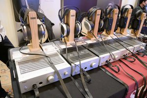iBassoでは、高硬度の金属クロムを用いた振動板、強力な磁気回路を搭載するイヤホン「IT05」や、カーボンファイバー配合バイオセルロース振動板を採用した開放型ヘッドホン「SR3」など、昨日発表されたばかりの新製品がラインナップ。着脱/交換可能なカートリッジ式アンプ「アンプカード」が特徴のDAP「DX300」「DX320」は、Nutube真空管を搭載した最新アンプカード「AMP14」を装着した状態で体験できた。