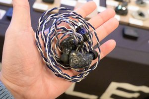 ほか、国内メーカーの新ブランドや、オーディオショップと共同開発した製品も合わせて出展。「Kuon」は、カスタムIEMを飾る銀製フェイスプレートや、銀筐体のイヤホンなどで知られる国内メーカー・K2CRAFTのブランド。銀筐体の響きを活かし、スピーカーリスニングのような空間表現豊かなサウンドを目指したというダイナミック型イヤホンや、元はAROMA AUDIOのイヤホン「Jewel」用に開発したというケーブルなどを参考展示した。