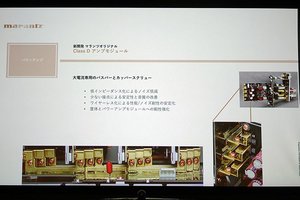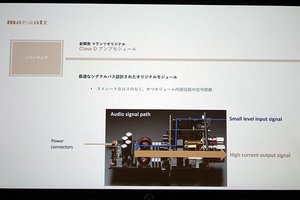 なお、マランツのホームシアター向けのマルチチャンネルパワーアンプにClass Dアンプが採用されるのは初めて。しかし、「PM-10」や「MODEL 30」などのステレオプリメインアンプを始めとする、様々な製品でClass D方式のアンプを採用しており、その回路設計や音質チューニングについて蓄積してきたノウハウを本機にも活かしたという。世界の様々な有名メーカーのモジュールから厳選した結果、今回はアイスパワー(ICEpower)製のものをベースに様々なカスタマイズを行い高音質化を図っている。