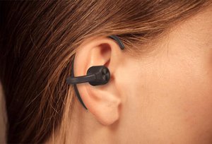 ゲオ、イヤーフックを取り付けられる完全ワイヤレス骨伝導イヤホン