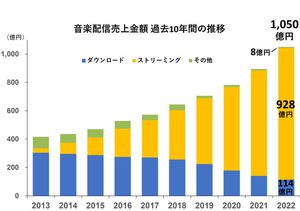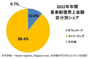 2022年の音楽配信売上、過去最高1,050億円を記録。88.4%がストリーミング