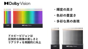 画質向上のアプローチでは、一般的に認知されている要素としてフルHDや4Kという言葉で指し示される「解像度」、動きの滑らかさを示す「フレームレート」が第一にあり、ドルビービジョンの提供するHDR(ハイダイナミックレンジ)効果ではさらに、明暗部の階調をより大きくした「高コントラスト」と色数そのものを増やした「高色域」を強調しているという。