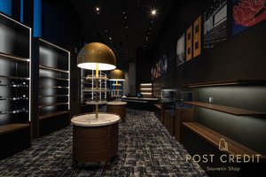 館内で唯一、映画鑑賞客以外でも利用できる施設として、スーベニアショップ「POST CREDIT」を構える。映画の公式グッズのみならず、コラボ商品や限定商品、新宿・歌舞伎町のお土産商品などさまざまな商品を用意するという。