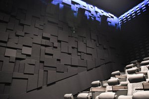シアターデザインについては「映画に最も集中できる空間を作る」というコンセプトの下、視覚的なノイズを極力排する黒を基調としたデザインを採用。聴覚的にも音の反射を抑える内装デザインを取り入れ、「映画鑑賞に最適な音環境を構築した」とアピールする。
