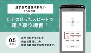 再生速度を速めた音声を繰り返し再生する速聴トレーニング、時短をしながらの英語学習、逆に再生速度を落とすことで、聞き取りにくい難易度の高い問題を自分のレベルに合わせた学習、聞き取りやすい速度で聴きながら真似て発音を行うシャドウイングなどに最適としている。