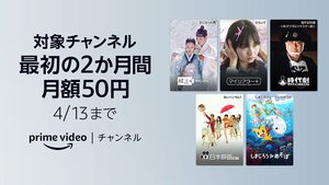 併せて、対象のPrime Videoチャンネルが、最初の2か月間月額50円で楽しめる期間限定キャンペーンを4月7日から4月13日まで実施する。韓流ドラマやバラエティに加え、名作時代劇や大ヒット邦画などが見放題で楽しめる全5チャンネルが、最大90%オフの月額利用料で2か月間お得に楽しめる。