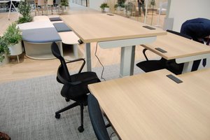 「集中」「リラックス」「コミュニケーション」などの機能を用途に合わせてカスタマイズできるオフィス家具コレクション「enKAK(エンカク)」を採用し、配線・照明・空調工事などが二度手間がかからないように設計されているため、用途に合わせて容易にアップデートすることも可能だ。