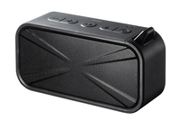 サイズは最長辺が172mm、質量は約365gと持ち運びやすいコンパクトサイズに仕上げた。筐体右側面には吊り下げ用のフックを備えて、携帯性・設置性を高めている。スピーカー付近にはハンズフリー通話用のマイク、天面には各種操作キー、底面には設置時の安定性を高める滑り止めが装備されている。また、機器とBluetooth接続されていない状態で無音が続くと約10分後に自動で電源オフになる「オートオフ機能」も備える。