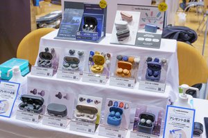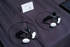 また、試聴に訪れる人数が多かったという製品が、Bluetoothイヤホン「Float Run」。音楽を聴きながら周囲の物音にも気を配れる、いわゆる “ながら聴きイヤホン” の中でもユニークな、スピーカーを耳の前方に浮かせて固定する構造が注目を集めたようだ。