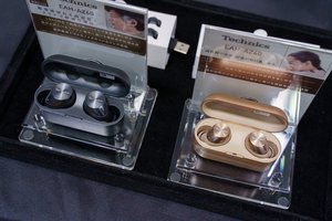 テクニクスブースでは、完全ワイヤレスイヤホンの主力モデル「EAH-AZ60」「EAH-AZ40」をプッシュ。EAH-AZ60はバイオセルロース振動板を用いた8mmダイナミックドライバーを搭載し、ノイズキャンセリングやLDACコーデックにも対応する多機能モデル。もう一方のEAH-AZ40はPEEK振動板採用の6mmダイナミックドライバーを搭載し、軽快な着け心地を実現したコンパクトモデル。どちらも共通して通話音声処理技術「JustMyVoice」テクノロジーを採用することで、クリアな通話音質も追求している。
