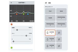 カスタムイコライザー機能では、パラメトリックタイプのイコライザーを採用し、周波数とゲイン、Qの値をそれぞれ細かく、自由に調整可能。調整した音質設定は3つまで保存できる。