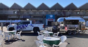 またカフェトレーラーをけん引する車両には、小林可夢偉選手発案のもとトヨタが開発した世界に2台しかない水素で走る燃料電池車「トヨタタンドラ」を採用。同車両から供給される電力をブース全体の運営に使用するなど、カーボンニュートラルへも取り組む。