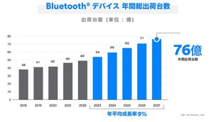 Bluetoothデバイスは年平均9%増で2027年に76億台突破。 LE Audioは成長の牽引役