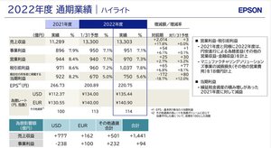 セイコーエプソンは、同社代表取締役社長の小川恭範氏が登壇し、2022年度第4四半期の決算発表を行った。2022年度4Qの実績は、売上収益3,359億円で前年同期比537億円増、事業利益143億円で前年同期比16億円増となった。