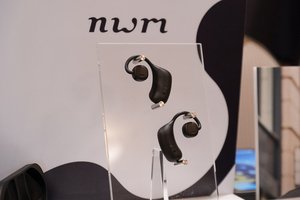 NTTソノリティのコンシューマー向けブランド・nwmは、耳を塞がないイヤホンの有線タイプ「MWE001」、完全ワイヤレスタイプ「MBE001」の2モデルを出展。MBE001は4月より一般販売をスタートしたばかりだが、売れ行きは順調で、こうしたイベント等での認知度も徐々に上がってきているという。