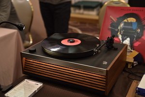 飯田ピアノブースでは、HYMのエントリー向けターンテーブル「LUMI」が参考出展。プリアンプ、スピーカー、Bluetoothを内蔵したモデルとなっており「いい音をいろいろ試してもらえたら」という観点で本モデルを展示したと語る。