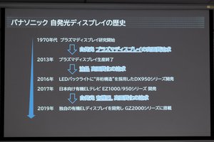 パナソニックは1970年代よりプラズマディスプレイの研究を開始。2013年にはプラズマディスプレイの生産が終了したが、その後は液晶を経て有機ELディスプレイの高画質化を追求するかたちで、「クリエイターが作り出す映像をリアルに届けたい」という想いのもと自発光ディスプレイの研究を続けてきた。