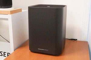 AMBEO Subは、8インチのロングスローウーファーと350WのD級アンプを搭載し、最低域27Hzの「圧倒的なベースサウンド」を謳うサブウーファー。本体はエアフローノイズなどを最小限に留め、情報量豊かで淀みのない低域再生を目指すため、バスレフ型ではなく密閉型を採用している。