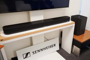 メディア向けの説明会で、実際にAMBEO Soundbar PlusとAMBEO Subの組み合わせでDolby Atmosのデモコンテンツを視聴したところ、視聴した部屋よりひと回りコンパクトに形成された空間のなかで、縦横無尽に音が回り込むようなイメージが得られた。移動していく音の繋がりは滑らかで、密度が濃い。音楽コンテンツの再生においても、低音から高音までのバランスが崩れず、クリアなサウンドが楽しめた。