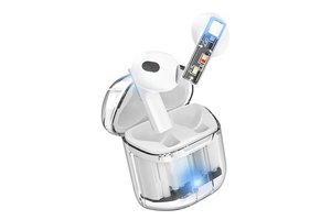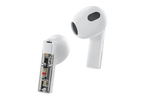 内部の部品や回路が見えるスケルトンデザインのインナーイヤー型完全ワイヤレスイヤホン。片耳約4gと軽量で、タッチセンサー式で耳元で簡単に操作ができるなど、操作性とデザイン性を両立したとアピールする。