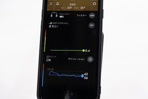 ノイズキャンセリングや空気清浄をはじめ、各種設定はダイソンのスマホ向けアプリ「MyDyson」から調整が可能。さらに同アプリでは本体に搭載されたセンサーがモニターしたNO2濃度や騒音レベルをリアルタイムでチェックすることもできる。