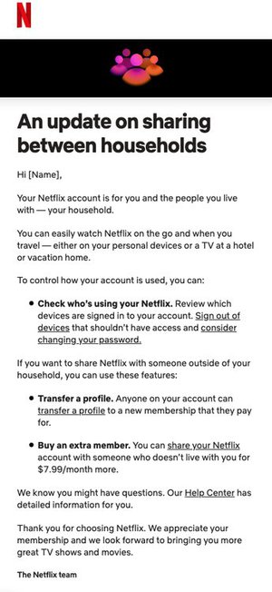 なお、Netflixではアカウント有料共有よりも安い、月額6.99ドルの広告付きプランも展開中。Netflixが認めていない形でのアカウント共有を行い無料視聴しているユーザーを、こうした広告付きプランなどに誘導する狙いもあるのではないかと思われる。