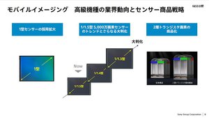 ソニーは、2023年度の各事業分野ごとの戦略説明会を開催。本日5月25日は、カメラ製品を始めとしたエンタテインメント・テクノロジー&サービス(ET&S)分野、スマートフォンや車載用を中心としたイメージング&センシング・ソリューション(I&SS)分野について発表が行われた。