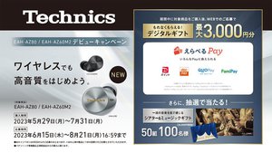 パナソニックは、同社テクニクスブランドの新完全ワイヤレス「EAH-AZ80」「EAH-AZ60M2」発売を記念し、最大3,000円分のデジタルギフトなどがもらえる「ワイヤレスでも高音質をはじめよう。AZ80/AZ60M2 デビューキャンペーン」を本日5月29日より実施する。