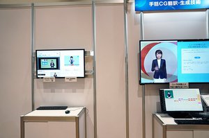 あわせて、主に災害時のニュースなどを想定した、言い間違いや重複する話し言葉を加味して適した言葉にリアルタイムで翻訳する「日英機械翻訳技術」や、「手話CG翻訳生成システム」などを紹介していた。