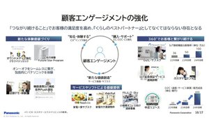 さらに顧客エンゲージメントの強化として、パナソニック製品やプログラムのオンライン・オフラインでの体験の場をひろげること、購入やサポートの場面で地域密着の販売チャネルなどを活かして顧客と繋がりつづけること、家電と食材のサブスク事業などに加えて中古リユースや清掃事業などの新たな価値創造をひろげること、といった取り組みがあげられた。