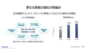 またSCM改革として、流通とデジタルで情報共有して実需を生産計画と連動する効率的な供給体制を目指す。販売コストの適正化や、在庫キャッシュフローの改善が見込まれるもの。さらに開発リードタイムやコストを削減するECM改革にも取り組む。これらのコスト競争力強化の施策により、3年累計のコスト削減目標を730億円とする。